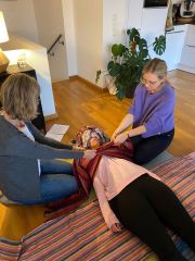 Als ich 2021 in der Weiterbildung bei Mrijam de Keijzer das erste Mal die Anwenungen bekam, fühlte ich mich so geborgen und gehalten. Mirijam erklärte uns, dass die Tücher auch als "verlängte Arme", also Umarmungen wahrgenommen werden.